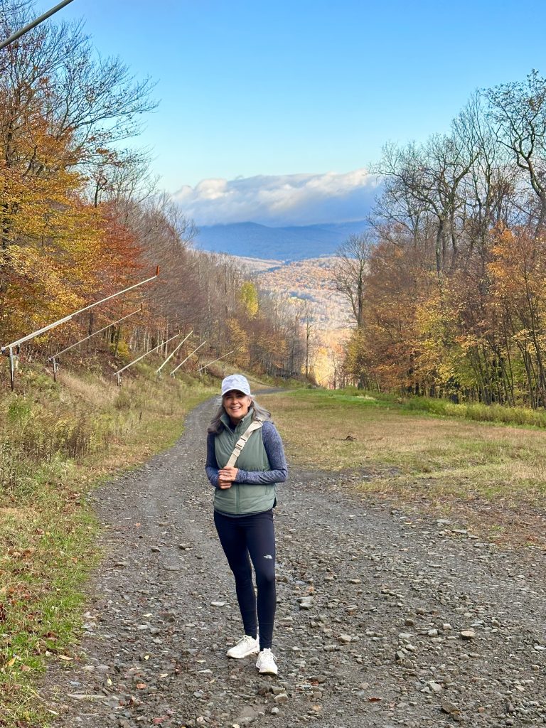 At the summit, congratulate your crew with a snack as you plan your winter ski routes. From the top, enjoy sweeping views of the Catskill High Peaks, rolling ridge lines, and deep forested valleys that stretch for miles. If the full hike feels like too much, the gondola runs on fall weekends, offering a ride to the top (the dates and times of the rides vary so check the Belleyare website to make sure it’s running).