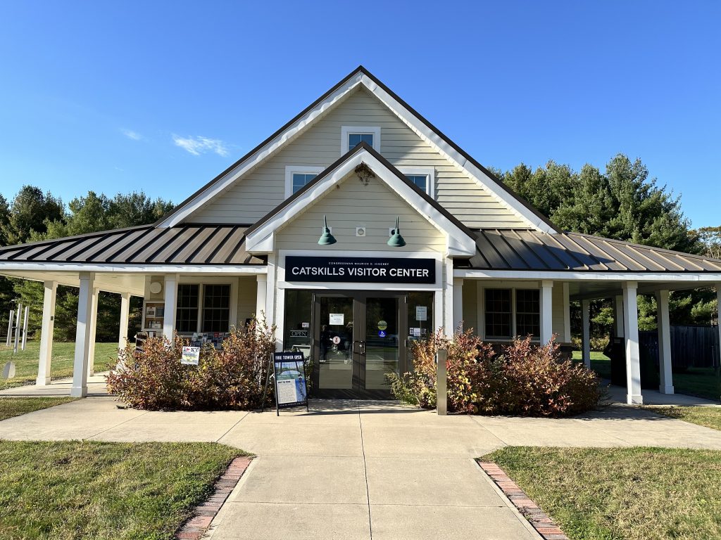 For families with little ones, start at the Catskills Visitors Center (5096 NY-28, Mt Tremper, NY 12457). There’s a large parking lot, and everything is stroller- and wheelchair-friendly. Start your visit on the paved loop trail, spotting bugs, birds, and trees.