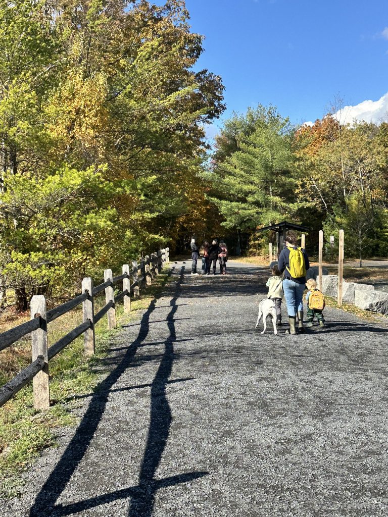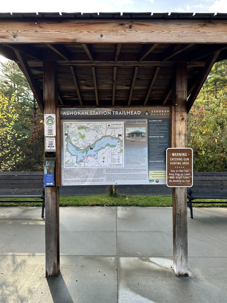 I ran a 5-mile stretch with my buddy under a canopy of fall color, stopping often to admire the views. For young families, I suggest heading to the Ashokan Rail Trail Promenade at the Woodstock Dike Trailhead (1285 NY-28, West Hurley, NY). This 2.7-mile paved section is stroller-friendly, accessible, and lined with scenic water views. This section is much more exposed and offers the chance for families to talk about clean water and our motivation to keep it that way.