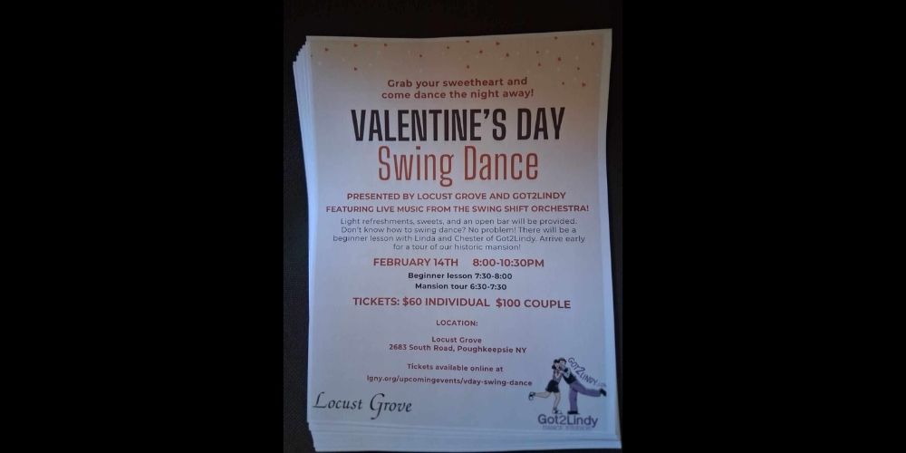 Valentine’s Day Dance at Locust Grove with the SWING SHIFT ORCHESTRA. Beginner swing dance lesson by Got2Lindy, open bar, mansion tour and refreshments included.