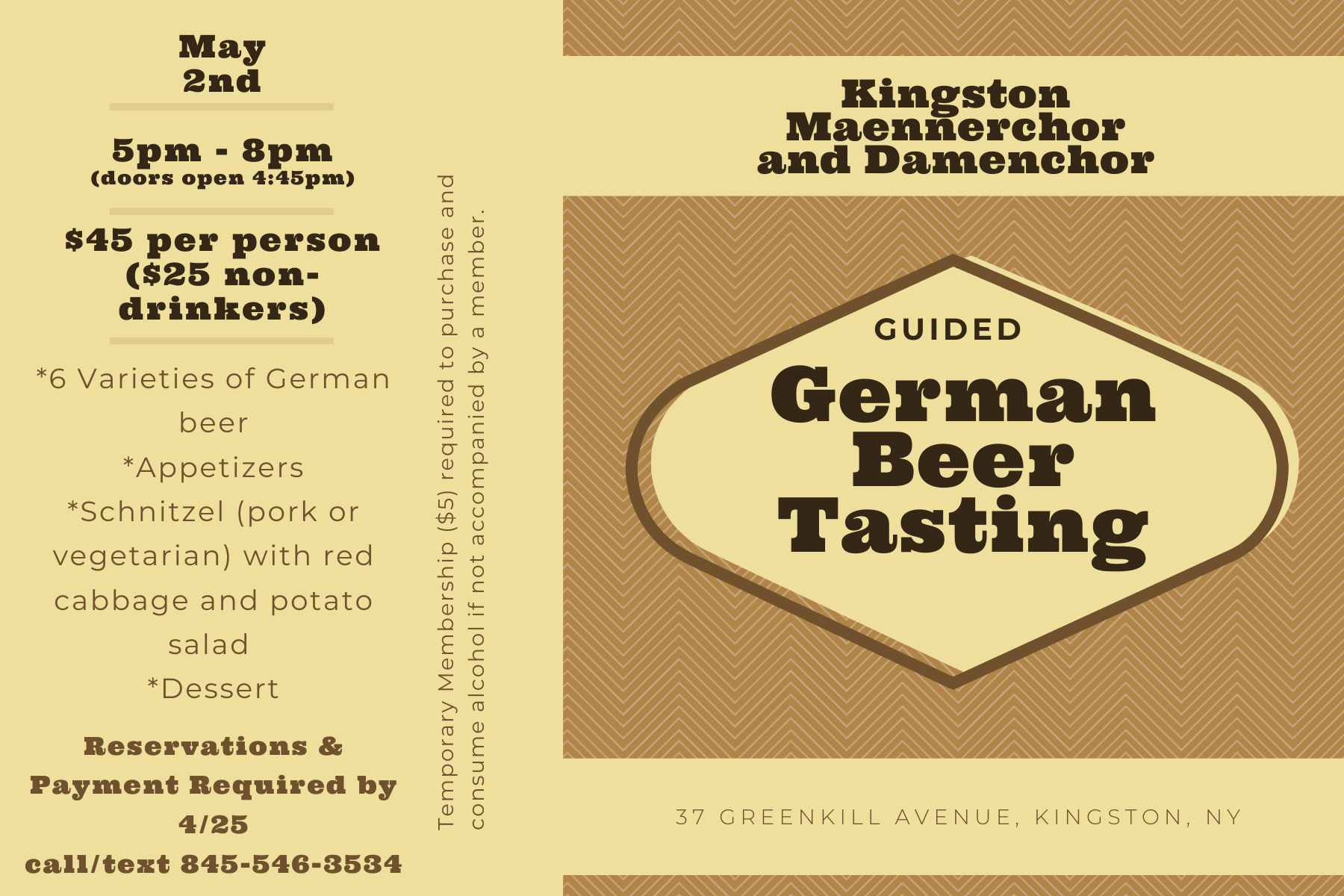 May 2 German Beer Tasting 5:00 pm - 8:00 pm Kingston Maennerchor & Damenchor Inc. 37 Greenkill Ave., Kingston Event Details Get Directions