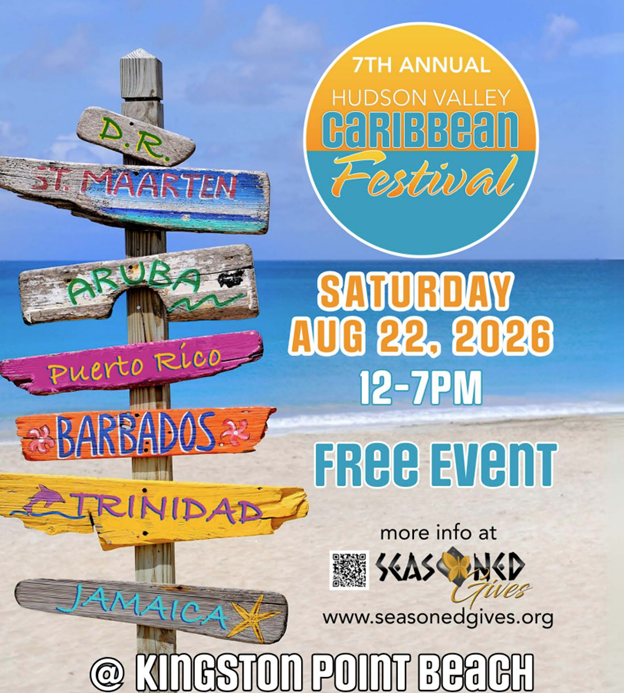 Aug 22 12:00 pm - 7:00 pm 7th Annual Hudson Valley Caribbean Festival Kingston Point Beach 102-144 Delaware Ave., Kingston Event Details Get Directions